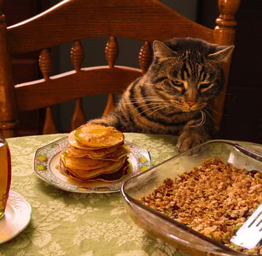 When I wrote about Jack's adventures I included pictures that I hoped would inspire conversation. Maybe a memory of seeing a violet bloom in Grandma's yard or the walk when you saw a turtle. A story about a pet opens the door for sharing many memories. What child doesn't enjoy a stack of flapjacks...just like Jack.